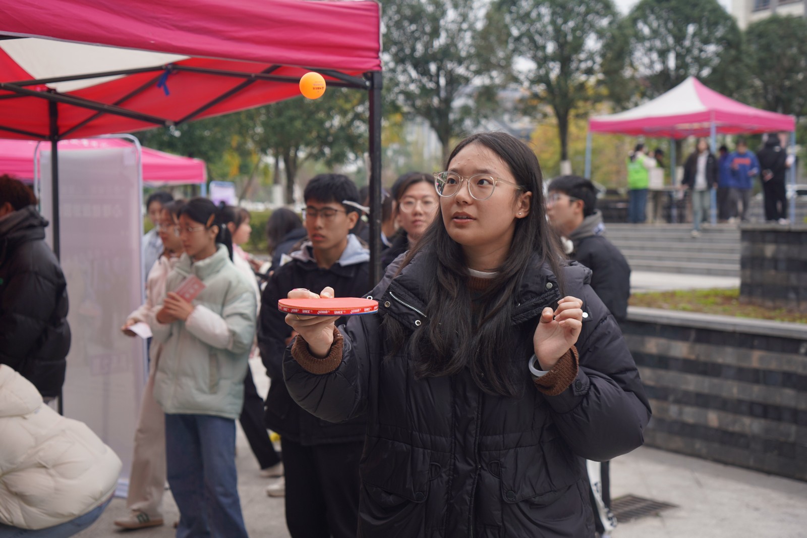 本次游园会共包含“袋鼠跳”、“蒙眼作画”、“弹瓶盖”、“乒乓之颠”和“精准投球”等5项活动,分为团队和个人赛项。活动中,同学们通过知识问答、运动比拼、团队竞技、动手操作等环节,获得身心上的放松和愉悦。“相信自己”“考试加油”“顺利毕业一起去旅行!”……在“情绪小纸条”收集环节,同学们纷纷写下了近期的奋斗小目标,为有烦恼的同学大方分享自己的快乐妙招。