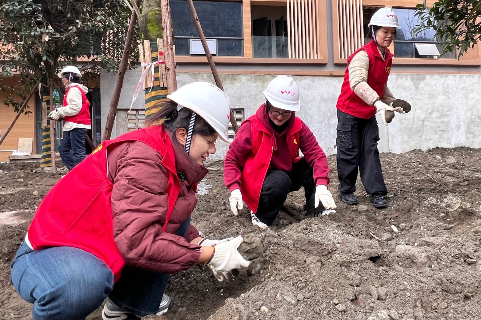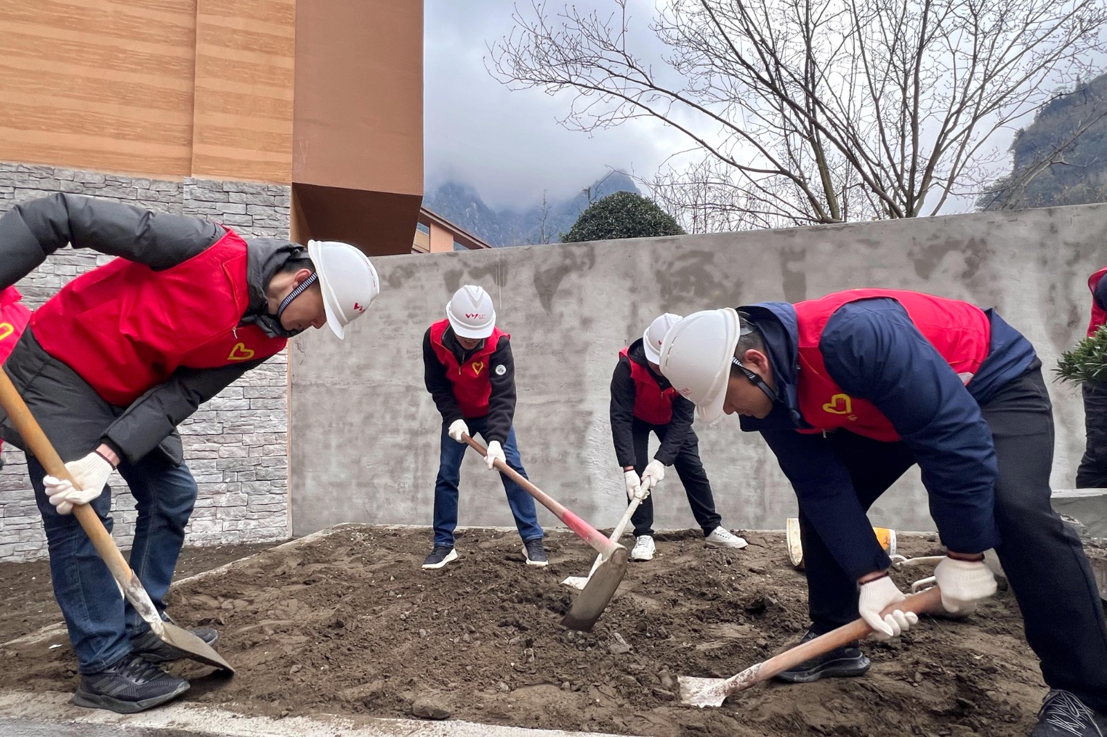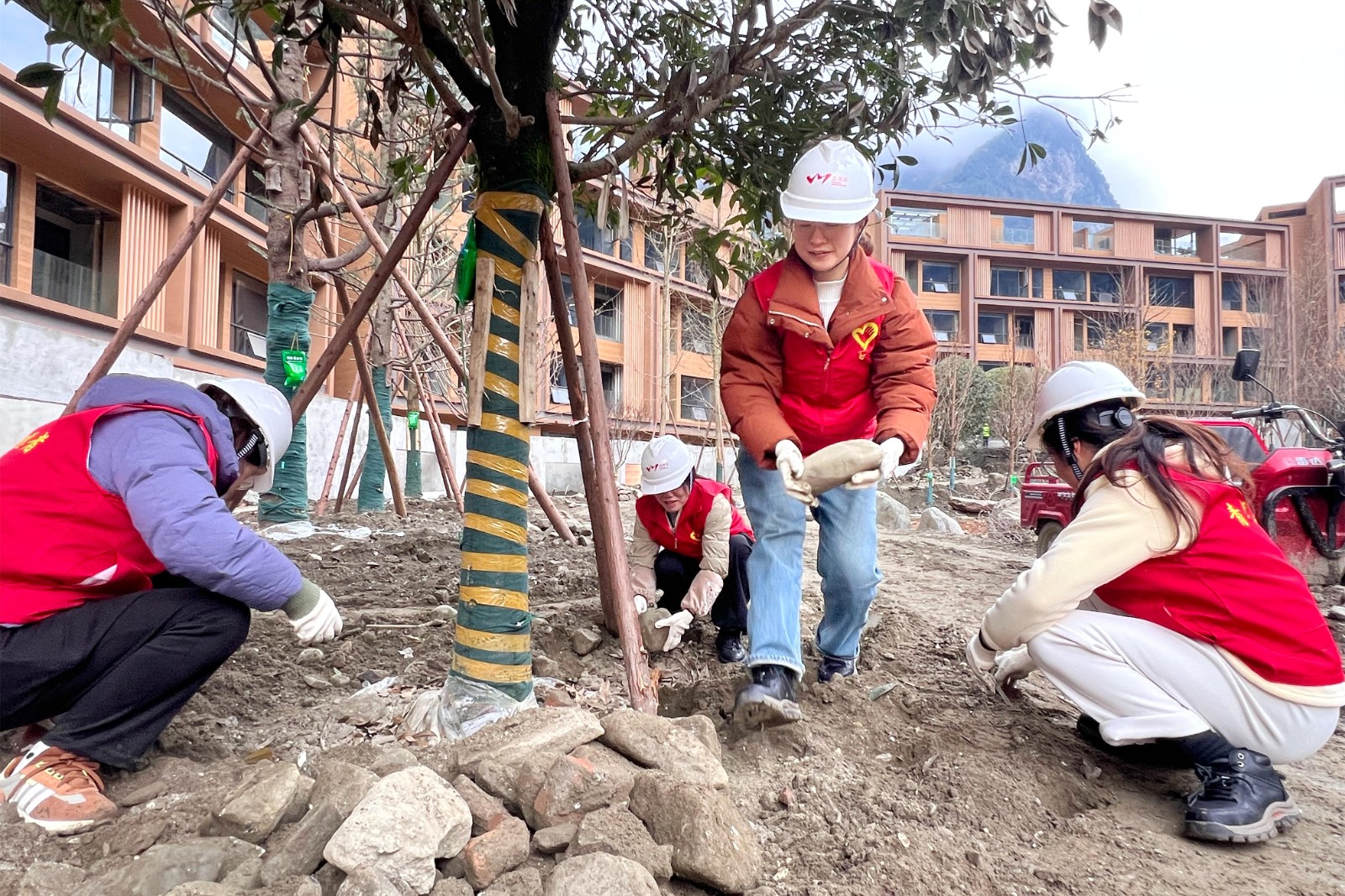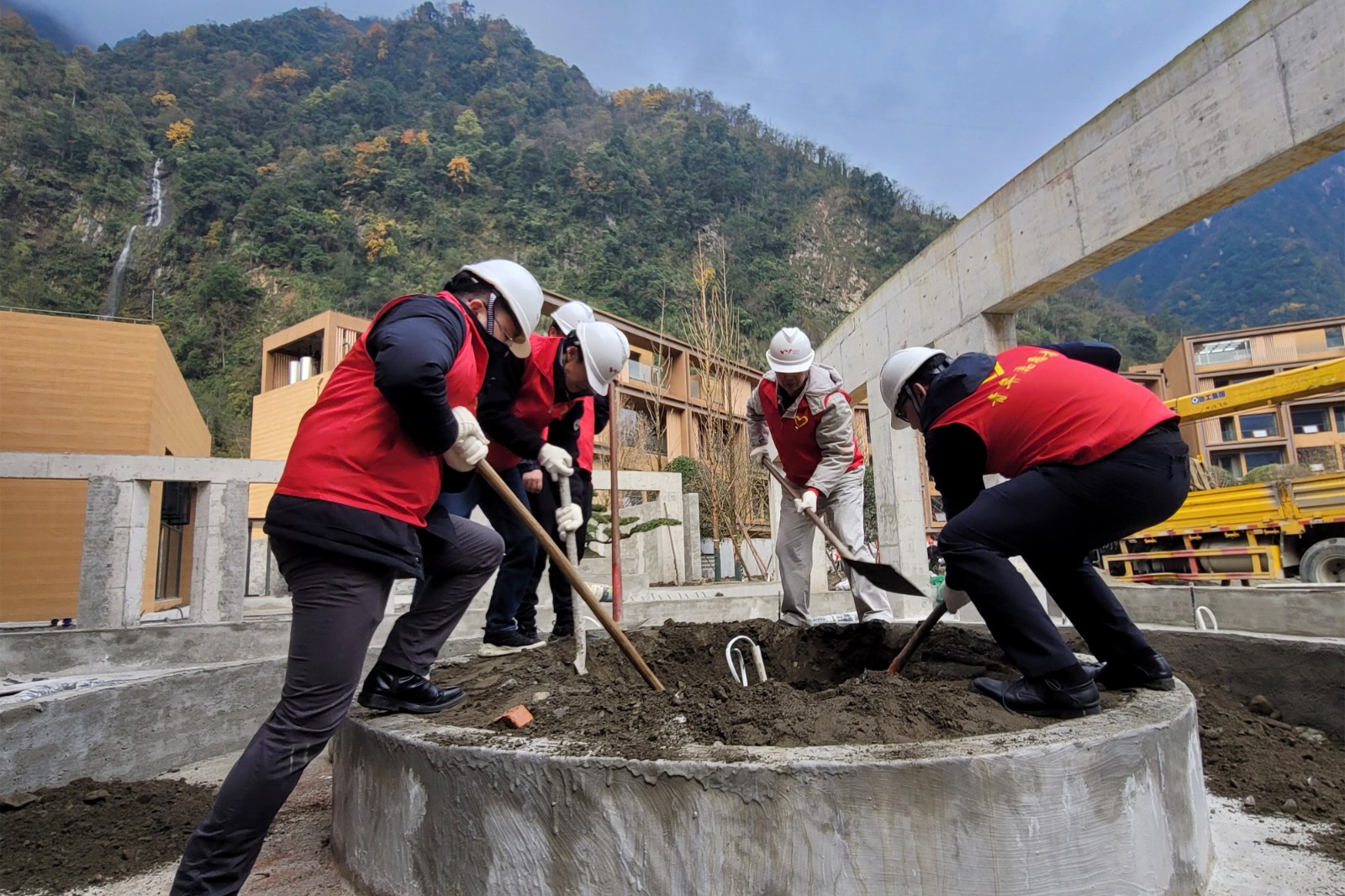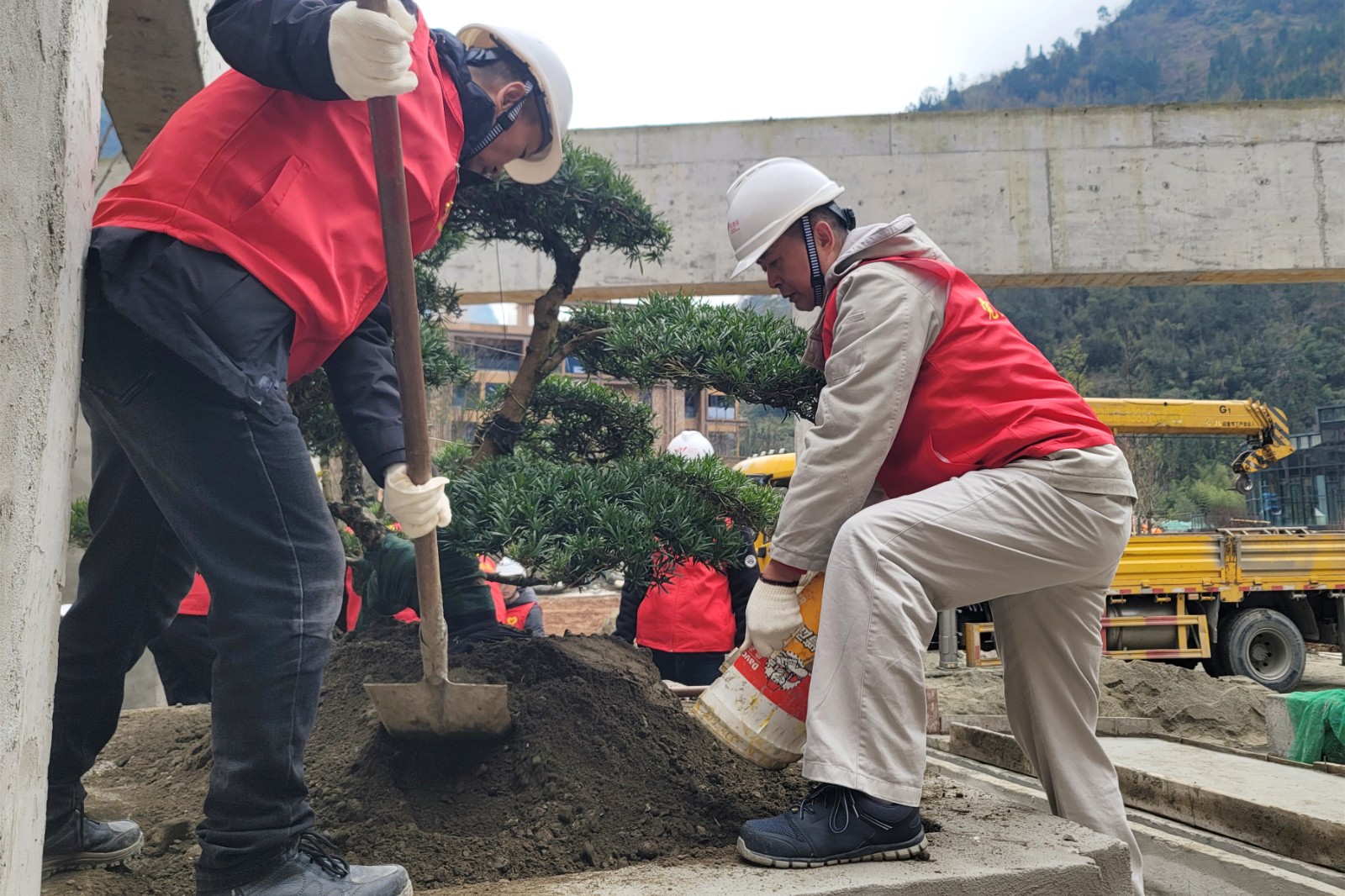 公司党员和青年志愿者在一期项目施工建设冲刺的关键时期,踊跃投身于酒店园林景观区域,他们刨土挖坑、挥锹培土,亲手种下迎客松树,以汗水浇灌希望,用行动诠释担当;她们俯身寻觅、手捡石块,以双手平整场地,用行动筑牢根基。此次主题党日活动意义非凡,通过亲身体验种树、人工捡石,进一步强化了同志们的服务意识与责任感,深刻领悟职责所在,彰显党组织强大的战斗堡垒作用,凝聚起全员奋进的精神和力量,为草科温泉特色小镇一期项目的圆满竣工及后续酒店运营注入强劲动力,更为旅游公司发展与地方建设增添一抹鲜艳的党旗红。