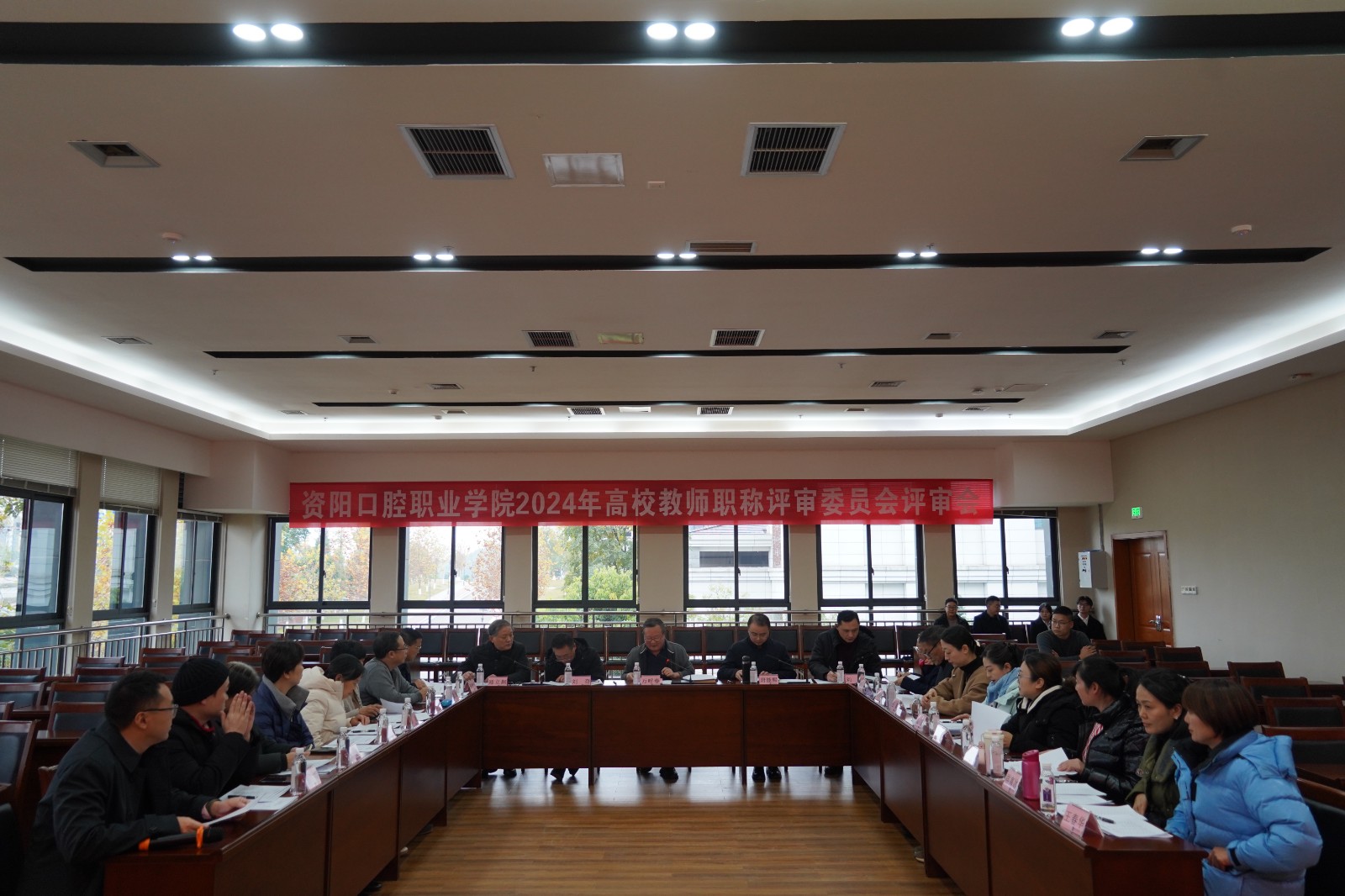 近日,资阳口腔职业学院组织召开2024年高校教师系列职称评审委员会评审会议。学院职称评审委员会主任万呼春主持,学院党委副书记、工会主席唐能熙列席。川大华西医院、省人民医院、四川城市职业学院等校内外19位各学科高级职称专家参加。