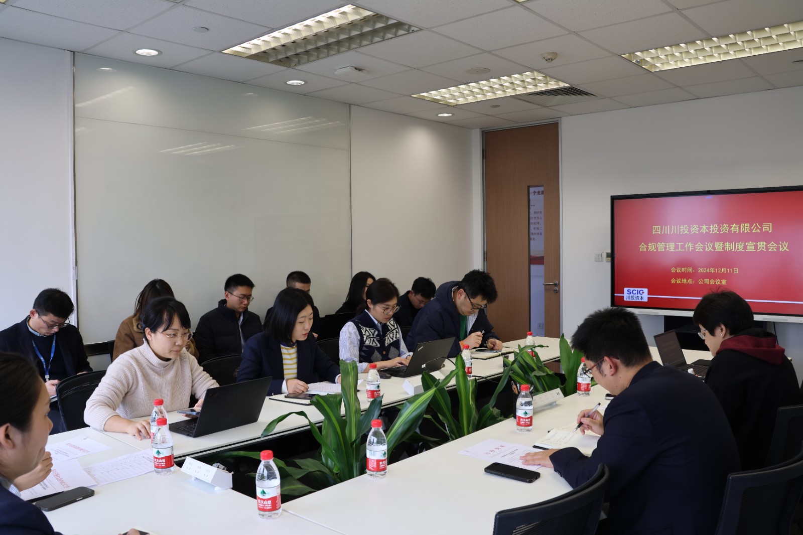 会议传达学习了集团公司2024年度合规管理工作推进会及相关文件精神,通报公司成立合规管理委员会、风险防控领导小组、设置合规管理员等文件,并总结了川投资本合规管理体系建设的阶段性成果。
