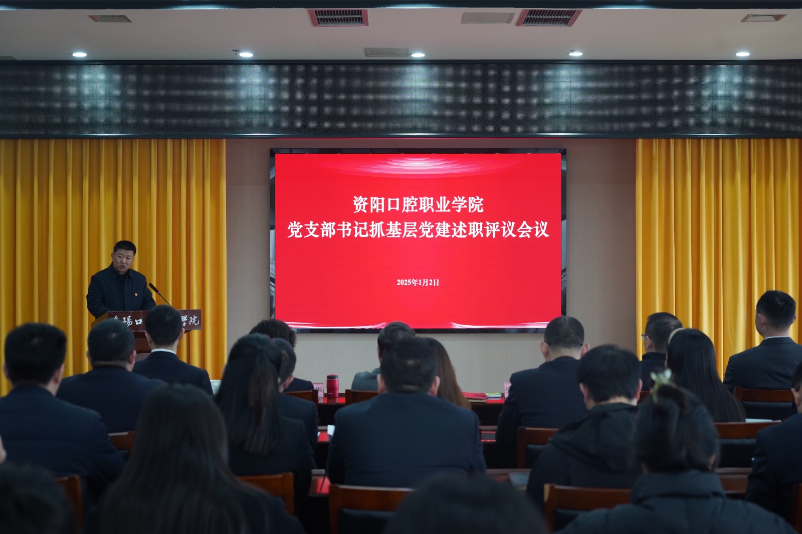 1月2日上午,资阳口腔职业学院召开2024年度党支部书记抓基层党建述职评议会议。学院领导班子成员、中层干部、各党支部书记、支部委员及党员代表参加会议。