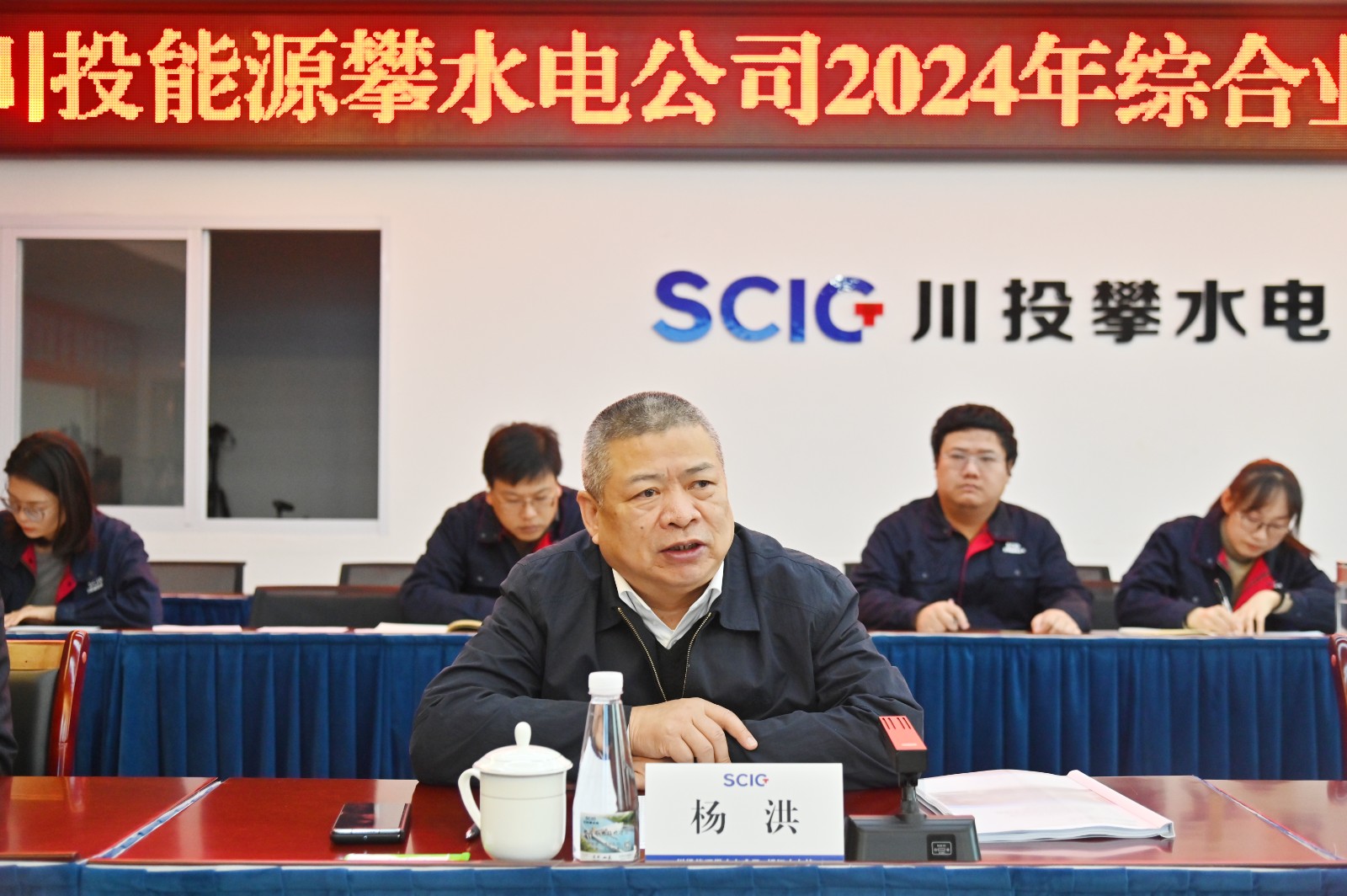杨洪对攀水电公司2024年度工作表示肯定。他指出,攀水电公司领导班子团结带领全体干部员工自我加压、勇于担当、奋力拼搏,在银江水电站的建设中克服了种种困难,提前1年实现了投产发电的目标。针对2025年工作,他强调,攀水电公司要始终坚持党建引领,把党的领导融入公司业务工作的各方面全过程,强化责任担当,狠抓工作落实,确保工程质量、进度、发电收益、电力营销等各项年度目标任务顺利完成。要压紧压实安全责任,围绕提升安全生产工作的精准性实效性,抓早抓小,稳步推动治本攻坚三年行动,落实落细安全生产各项工作,以过硬措施坚决守牢生态红线、安全底线。要凝心聚力深化改革,按照集团关于深化改革的决策部署,以钉钉子精神推动各项改革任务落地实施,全力冲刺银江水电站全部机组投产发电目标,在推动公司高质量发展再创新功、再创佳绩。