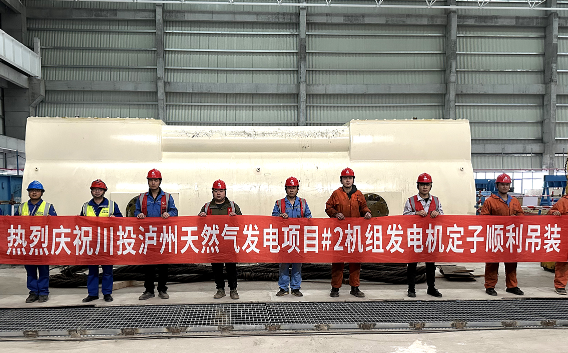 1月13日,川投泸州天然气发电项目2号发电机定子历经4天精心操作后成功就位,发电机定子吊装圆满完成。