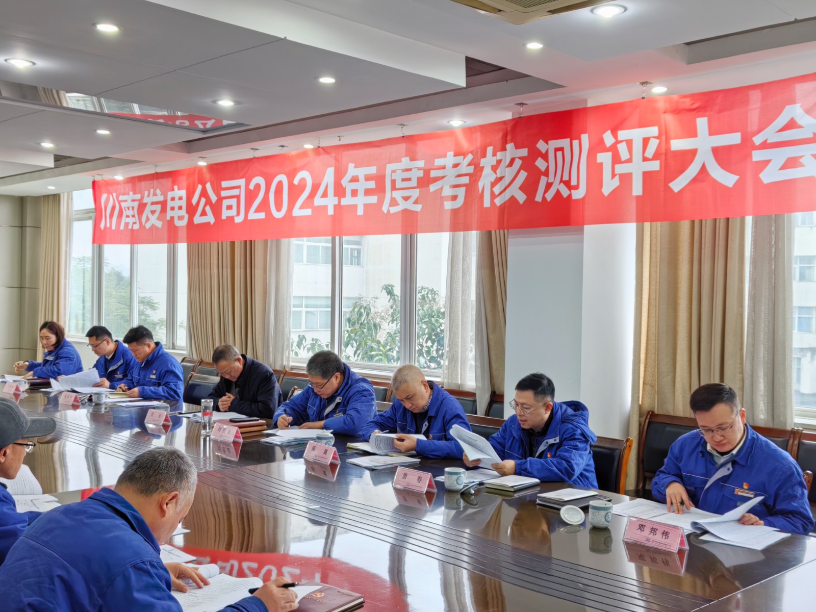 1月16日上午,川南发电公司组织领导班子成员、退休的原公司领导、全体中层管理人员及员工代表对2024年度领导班子、领导人员以及企业领导人员选拔任用工作“一报告两评议”进行考核测评。考核测评会由党委书记、董事长刘胜金主持。