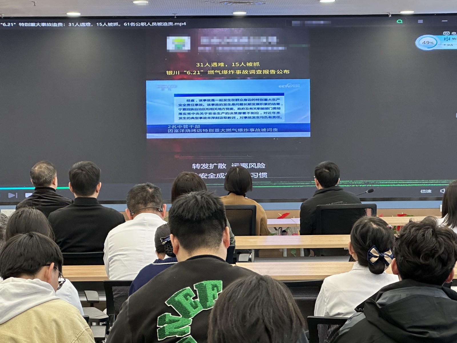 会上,传达学习了国家近期有关安全生产会议文件精神、省国资委关于开展安全生产和防灾减灾工作检查的通知、川投集团2024年安全环保工作情况通报及2025年工作部署、川投大健康产业集团近期安全稳定工作部署会上的讲话和《关于认真做好2025年元旦春节期间安全生产工作的通知》《关于加强人员密集场所动火作业安全管理的若干措施》《四川省2024年治理欠薪冬季行动方案》《西昌市人民政府2025年森林草原禁火令》《全市卫生健康系统今冬明春重大事故灾害隐患排查整治专项行动工作方案》等13份文件;观看了《银川烧烤店“6·21”特别重大事故》安全警示教育视频。