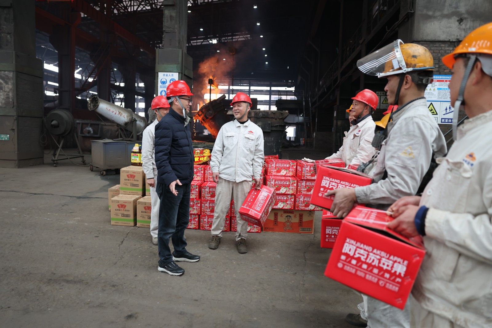 23日下午,公司党委书记、董事长李胜章深入节材二厂生产现场,亲切慰问了在一线辛勤工作的员工们,详细了解了一线职工的工作生活情况,对员工们在艰苦条件下依然保持高昂工作热情和高效工作状态表示由衷赞赏,并向一线职工送上了慰问金和慰问品。随后,到供销公司慰问了先进员工代表,对他们在公司“保营收、抓进度,确保完成年度目标”工作中的辛勤付出表示衷心的感谢,希望大家鼓足干劲,2025年再创辉煌。