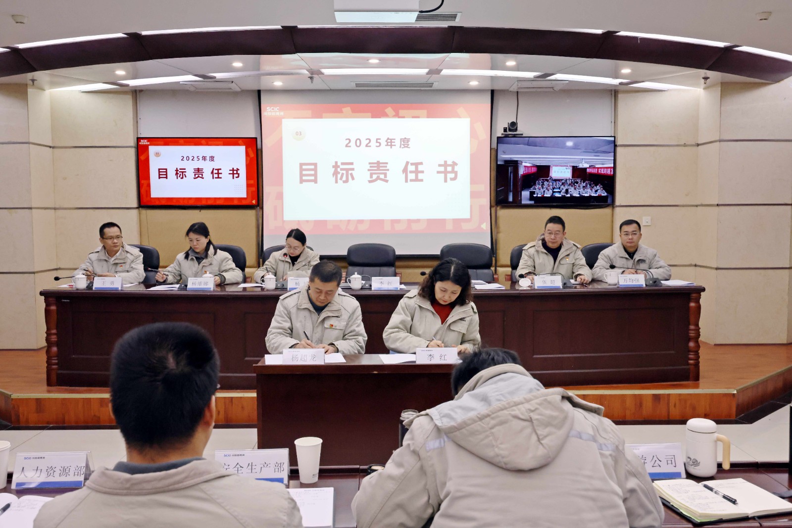 会上,李红与杨超龙签订了《2025年度经营业绩目标责任书》,杨超龙代表班子与各部门负责人签订了《2025年度部门综合目标责任书》《2025年度部门安全环保目标责任书》。