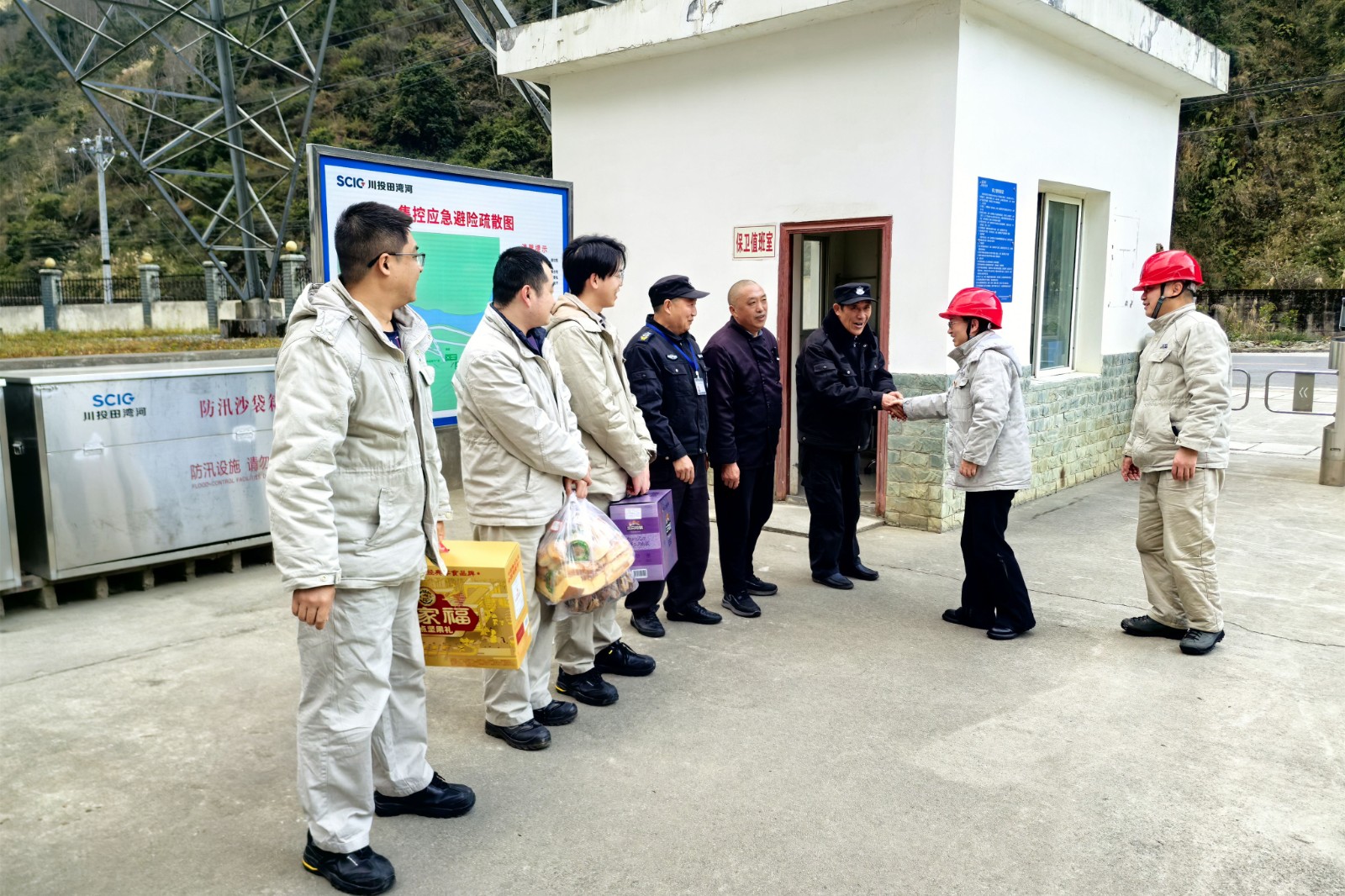 1月29日大年初一,川投田湾河公司党委副书记、职工董事、工会主席、现场值班领导杨坤受公司党委委托,带队前往流域各站点开展节日慰问,安全生产、发电部、水工部现场值班负责人一同参加。