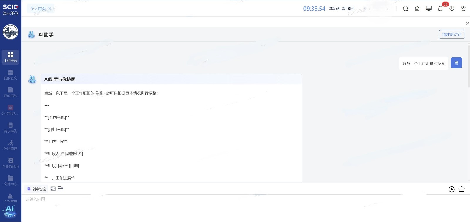 此外,川投数科还在平台建设中,展现了强大的自主研发能力。该信创平台集成了前沿的AI大模型、自研的信创技术架构、高度自主可控的文档管理中心以及强大的数据中台等一系列创新产品。这些创新功能、架构不仅提升了平台的性能和安全性,还为用户带来了更加智能化、便捷化的使用体验。例如,AI智能问答和AI文案编写功能,能帮助用户快速获取信息和高效完成文档撰写,极大提高了工作效率,助力央国企高质量发展。