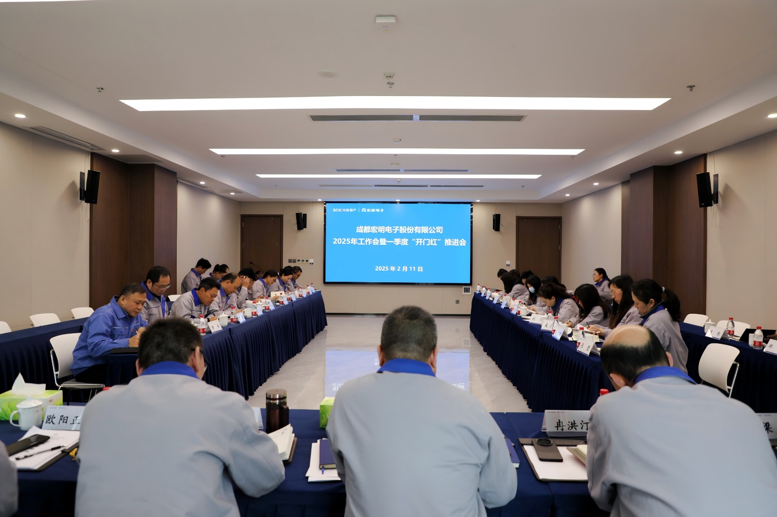 会议传达学习了川投信产一季度“开门红”推进会精神;宏明电子主要领导分别与各所属公司负责人签订了2025年经营业绩目标责任书和保密责任书。各部门、各所属公司围绕一季度“开门红”工作推进情况以及全年精益管理改进目标、工作举措进行汇报。