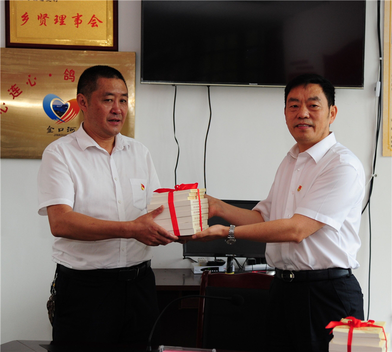 专题党课结束后,邓凯副书记向曙光村全体党员送上了《习近平新时代中国特色社会主义思想学习纲要》《习近平关于“不忘初心、牢记使命”重要论述选编》等学习资料,鼓励他们先学一步、多学一点、学深一层。