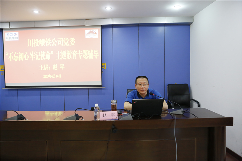 为深入学习贯彻习近平新时代中国特色社会主义思想,锤炼党员干部忠诚、干净、担当的政治品格,牢牢把握“守初心、担使命,找差距、抓落实”的总要求,6月14日,川投峨铁公司党委特邀乐山市委党校副教授赵平到公司作“不忘初心、牢记使命”主题教育专题辅导。川投峨铁公司在家领导、中层助理及以上管理人员、支部委员和普通党员代表共87人参加,会议由公司党委副书记、副总经理陈新龙主持。