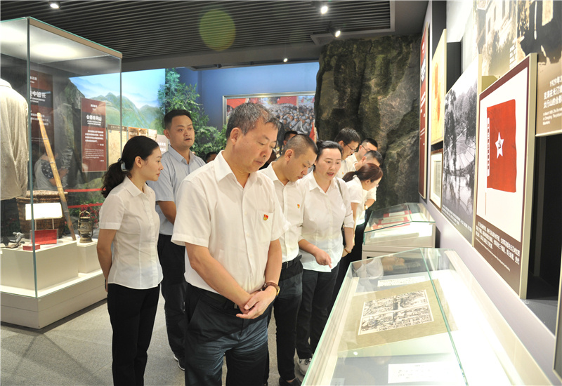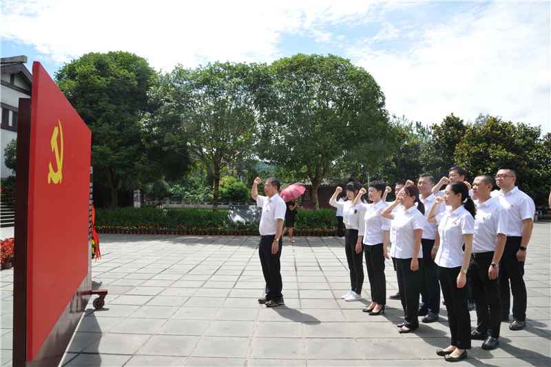 在朱德纪念馆,全体党员在陈列的图片、实物、文字资料和立体的影像资料前驻足沉思,深切感受到朱德元帅“为人民服务”“对党忠诚”的伟大情怀和高尚品格。沿着蜿蜒的台阶,全体党员来到朱德雕像前,在梁书记的带领下,面对鲜红的党旗,举起右手、握紧拳头,重温了入党誓词。