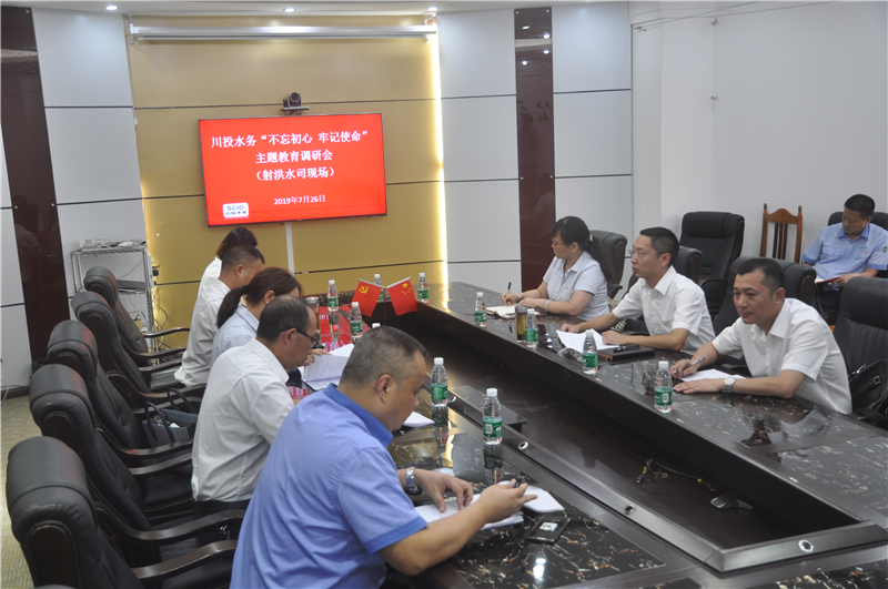 7月26日,川投水务党委副书记、总经理邓锐带领安全环保部经理马玉彬、生产技术部经理王镇到射洪水司开展“不忘初心、牢记使命”主题调研,与射洪水司领导班子及各部门负责人进行交流座谈。