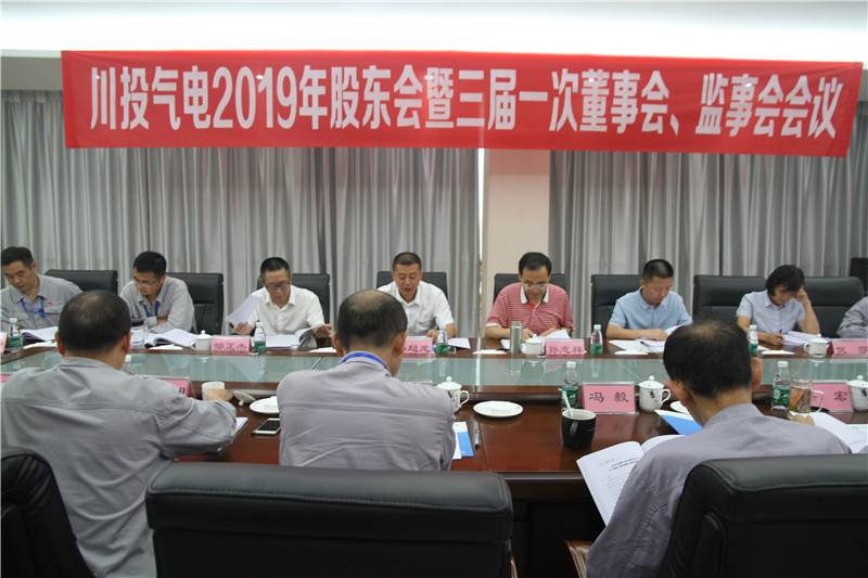 8月16日,川投气电公司召开2019年股东会暨三届一次董事会、监事会。川投集团股东代表能源和基础投资中心副总经理孙志祥,四川能投集团股东代表董事办专职董事邹正杰,达州市国资公司股东代表资本经营部经理包纪宁,川投集团审计部部长倪莎等出席会议。