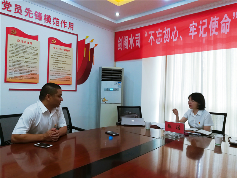 党课结束后,祝瑗与剑阁水司的党员同志开展了谈心谈话,并在剑阁公水司总经理何天政、副总经理杜刚的陪同下,分别到普安和下寺水厂就夏季供水保障工作进行了调研指导。