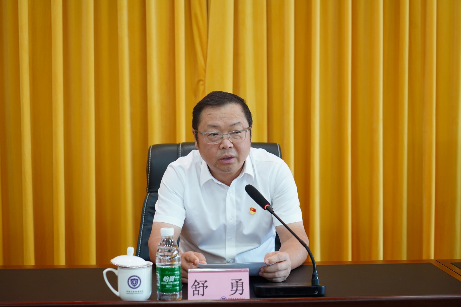 他指出,省委十二届五次全会以发展新质生产力为重要着力点扎实推进高质量发展作为主题,坚定把贯彻总书记关于高质量发展的重要论述作为主线贯穿始终,从全省实际出发,对以发展新质生产力为重要着力点扎实推进高质量发展作出整体谋划。他强调,学院要深刻把握全会的主题、意义和精神,认真做好当前学期末的教学和考试组织、毕业季的服务管理以及暑期培训业务的承接工作,在联动构建“产-学-研-医”产业链上发挥关键作用,与牙谷建设、资阳电气团结协作、开拓创新,共同努力创造更加辉煌的成果。