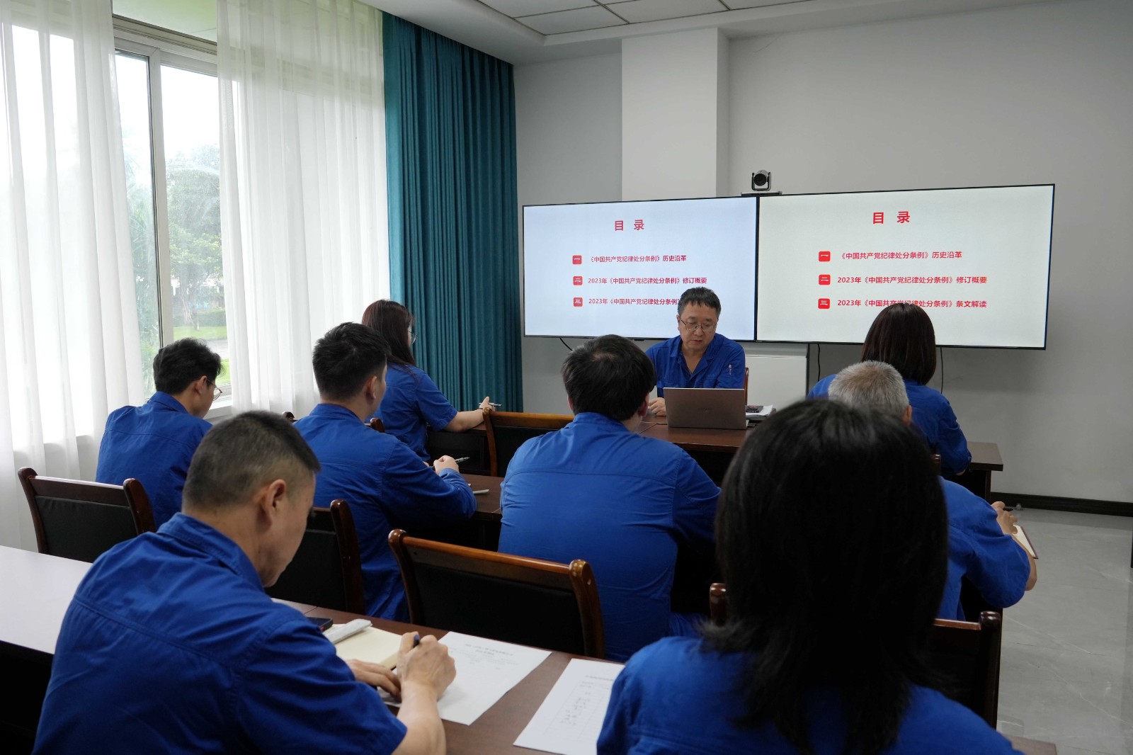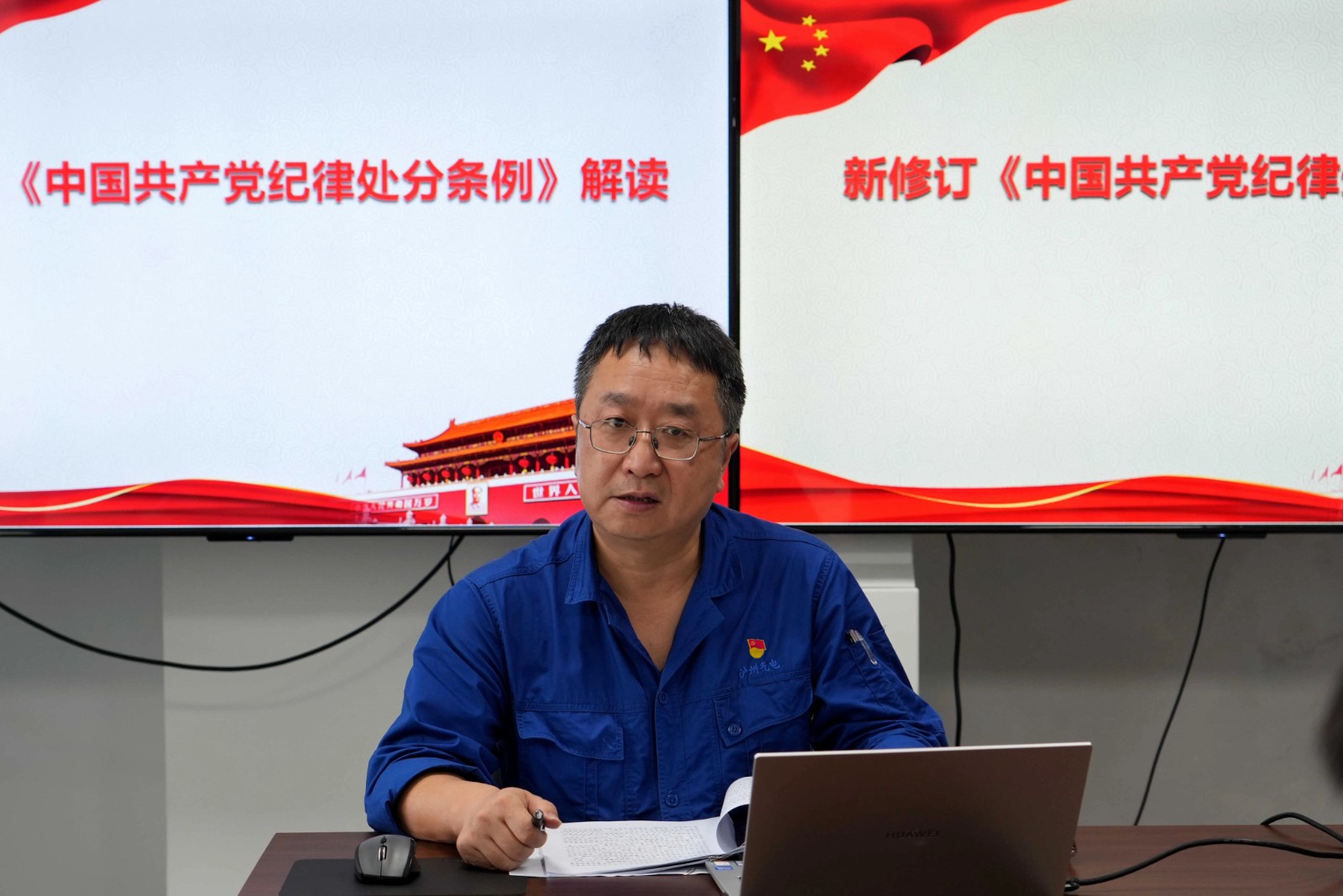 会上,李明尧领学了习近平总书记关于全面加强党的纪律建设的重要论述,详细解读新修订的《中国共产党纪律处分条例》,结合部门业务工作内容和风险,要求学纪、知纪、明纪、守纪,将警示教育作为党纪学习教育的重要举措,进一步引导公司干部职工常怀警醒之心,敬畏法纪、廉洁自律、守牢底线,始终做到忠诚干净担当,为川投泸州天然气发电项目建设提供坚强保障。随后,李明尧围绕加快培育新质生产力的主题,结合燃气发电未来的发展前景和项目建设实际情况,对省委十二届五次全会精神的主题、意义和主要精神进行了全面、系统、深入的讲解,他要求公司干部职工将全会精神内化于心、外化于行,转化为推动公司高质量发展的内生动力,切实将省委决策部署在泸州气电的实际工作中落地生根、开花结果。