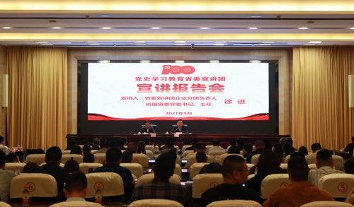 徐进同志从深入学习领会习近平总书记关于党的历史的重要论述,充分认识开展党史学习教育的重大意义;深研细读党史基本著作,全面了解中国共产党百年奋斗的光辉历程和历史性贡献;深刻把握开展党史学习教育的重点任务,确保中央、省委部署要求在国资国企落地落实;深入开展党史学习教育,切实增强“四个意识”、坚定“四个自信”、做到“两个维护”等四个部分,作了专题宣讲。