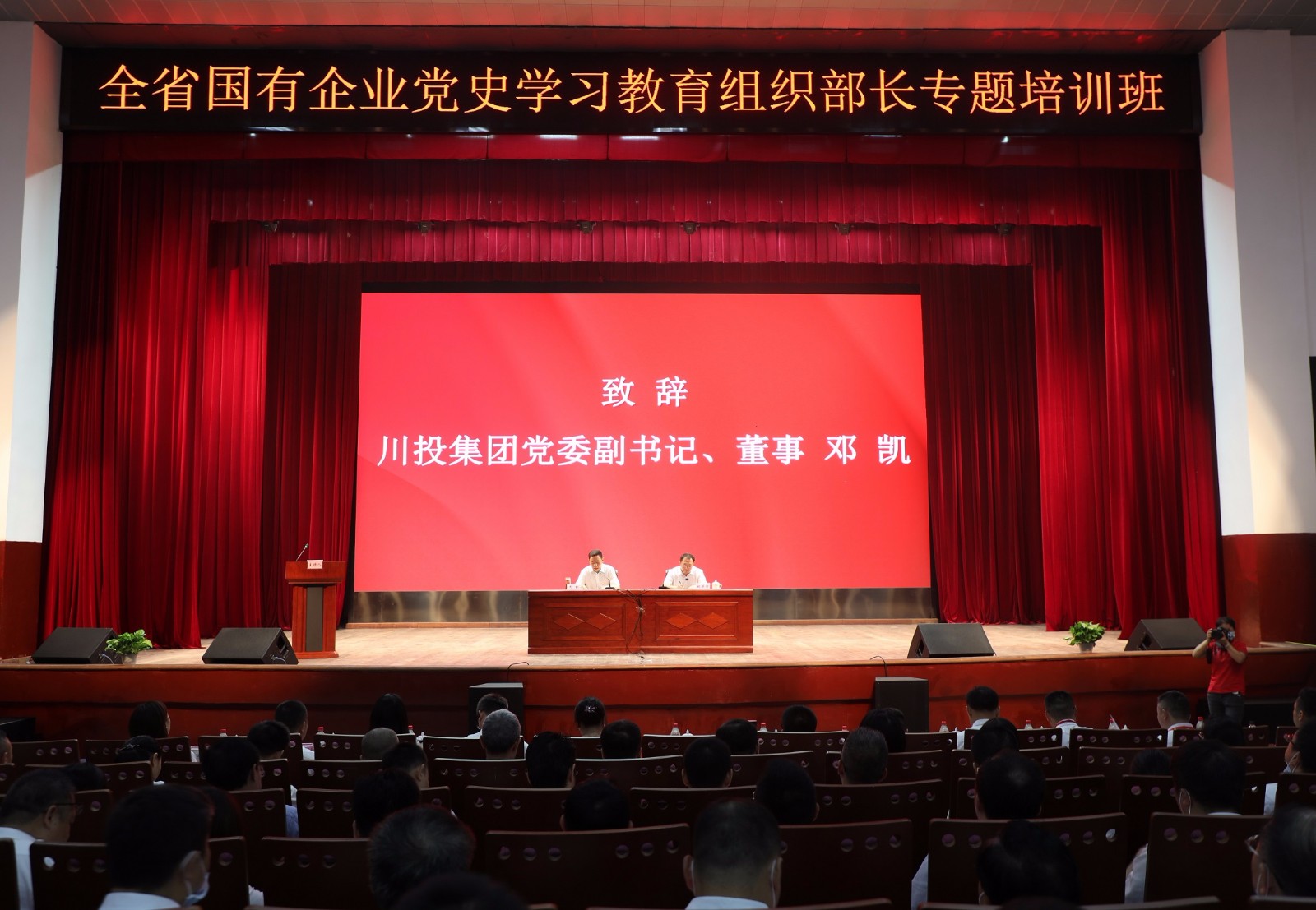 开班仪式上,川投集团党委副书记、董事邓凯代表集团公司作开班致辞,为学员介绍嘉阳煤矿“燃烧精神”内涵和党性教育基地规划建设情况。省国资委党建工作处处长张展智作开班讲话,对办好培训班提出了具体要求,希望全体学员通过本次专题培训班取得丰硕成果。