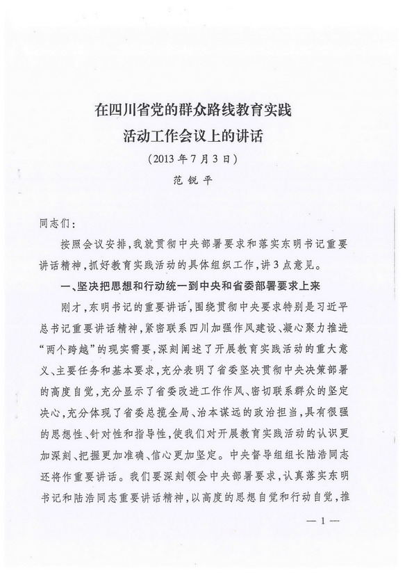 在四川省党的群众路线教育实践活动工作会议上的讲话(范锐平)