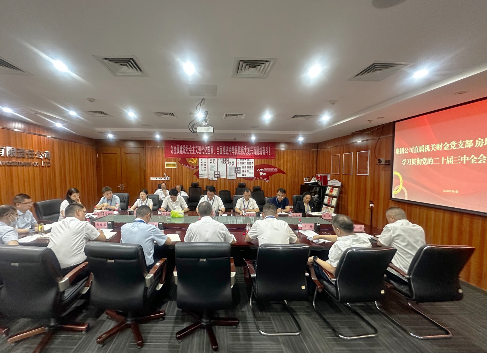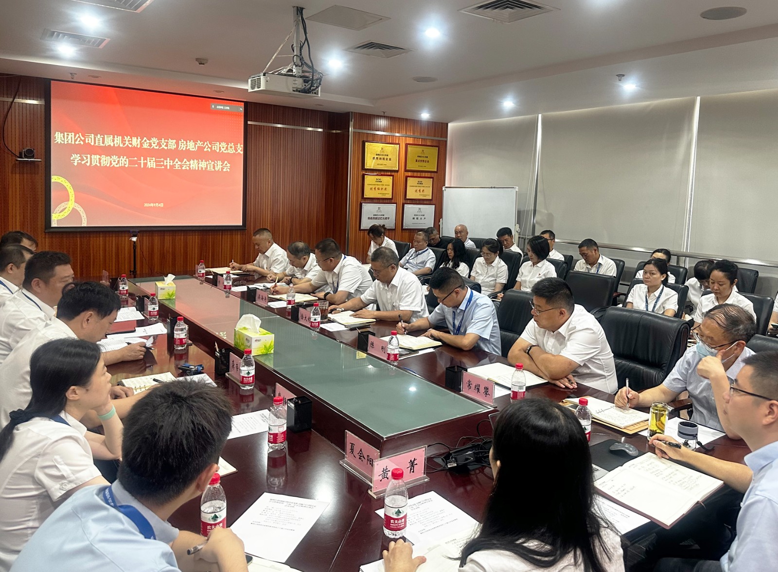 9月4日,川投集团财务总监黄劲到房地产公司宣讲党的二十届三中全会精神。房地产公司党总支书记、董事长龚帝伟主持会议。