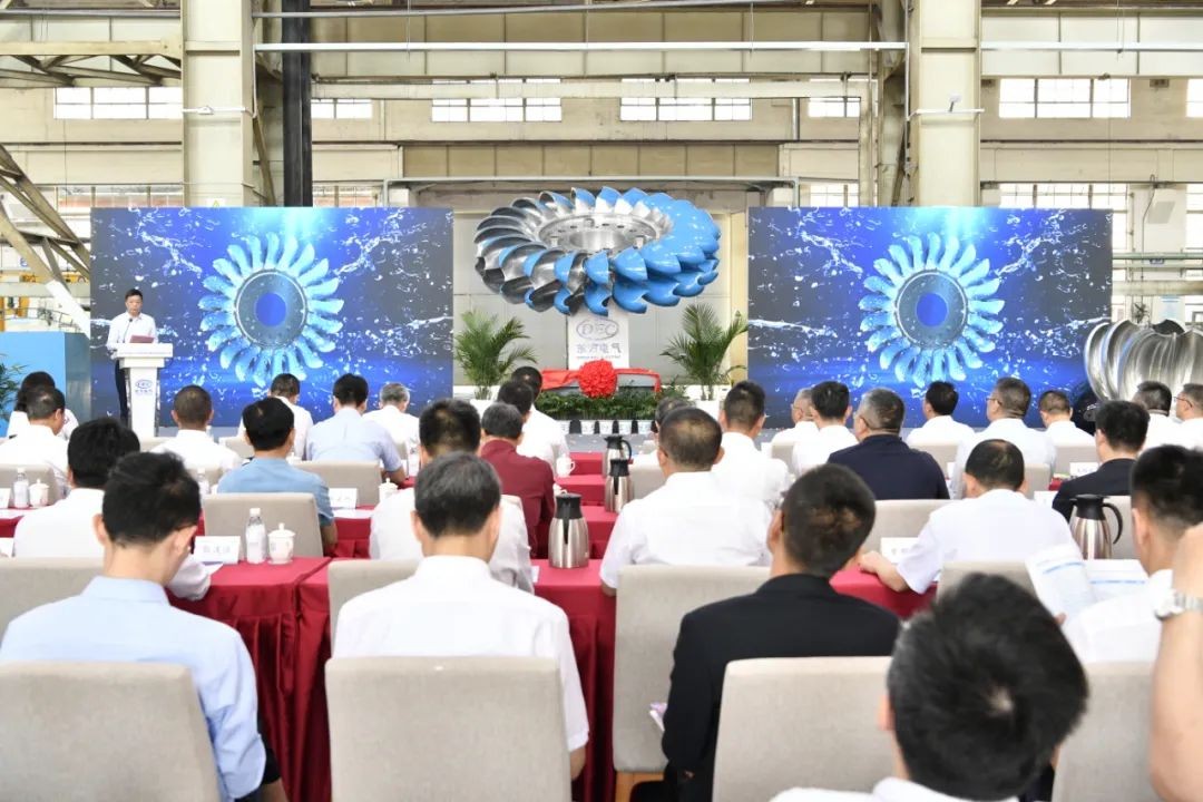 俞培根代表东方电气集团向出席本次活动的领导专家表示热烈的欢迎,对大家长期以来对东方电气集团的关心、支持与帮助表示衷心的感谢,向参与150兆瓦级冲击式转轮国产化研制的全体人员表示热烈的祝贺。他表示,东方电气集团始终秉持产业报国初心和制造强国使命,把科技自立自强作为发展的战略支撑,用实际行动“把关键核心技术牢牢掌握在自己手中”。本次完工下线的国产化首台150兆瓦级冲击式转轮是东方电气集团深入践行国家“双碳”战略、瞄准国内空白和世界一流开展关键核心技术攻关、推动我国能源装备自立自强的具体实践。东方电气集团将持续坚持服务国家战略,与相关单位、创新联合体深入合作,按照既定的“三步走”战略,全力推进巨型冲击式水电机组关键核心技术攻关,不断提高我国能源装备行业核心竞争力,为加快建设科技强国 ,更好服务“双碳”目标作出新的更大贡献。