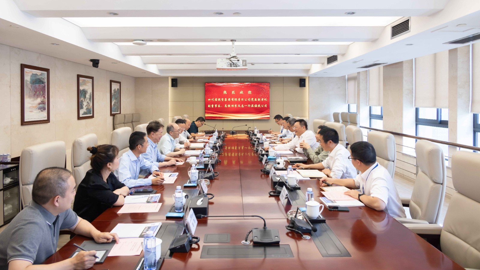 王强对李文志一行表示热烈欢迎,并重点介绍了西南院对四川省中长期能源发展规划的思考,以及总承包川投集团所属在建重点项目进展情况。王强表示,川投集团是省属最大的能源投资平台,拥有良好的能源产业发展基础,双方合作源远流长、成果丰硕,希望双方在四川能源兜底保供工作中,不断深化合作,共同推动四川能源产业高质量发展。