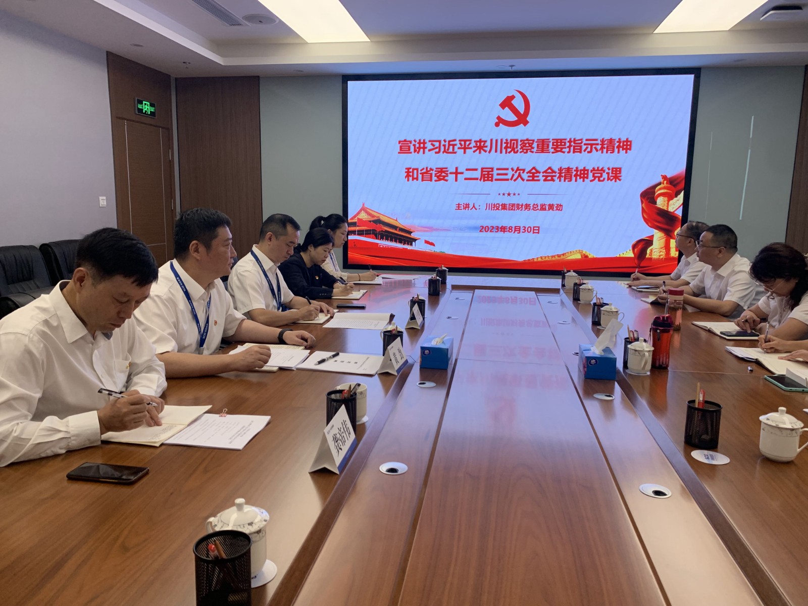 8月31日,集团公司财务总监黄劲为集团财金管理党支部、川投怡心湖党支部、川投空港党支部宣讲习近平总书记来川视察重要指示精神和省委十二届三次全会精神。