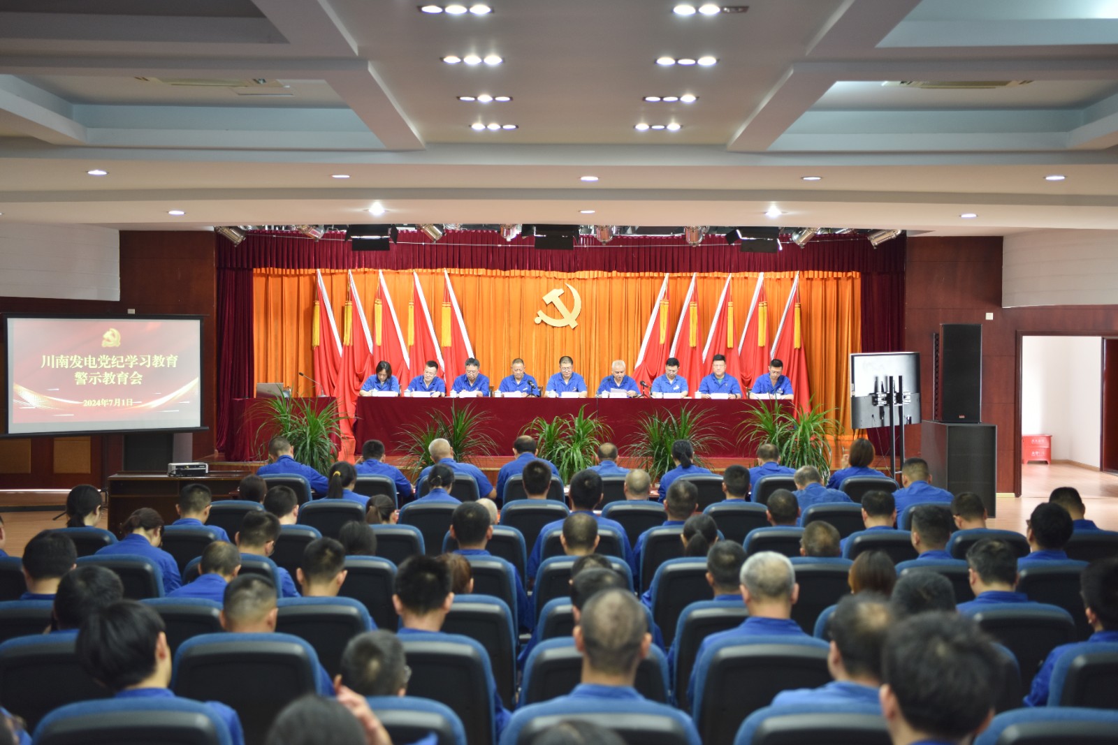 近日,按照川投集团党委关于开展党纪学习教育的部署要求,川南发电公司召开党纪学习教育警示教育会。公司党委书记、董事长刘胜金主持会议并讲话,公司领导班子全体成员和公司党员、入党积极分子共112人参加会议。