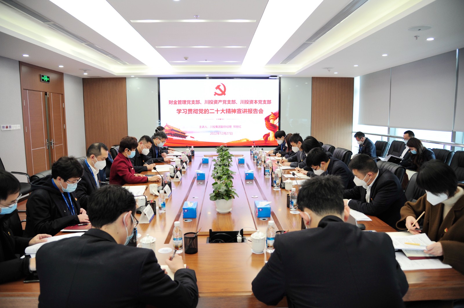12月27日下午,为深入学习宣传贯彻落实党的二十大精神,根据集团党委部署要求,集团公司副总经理郑世红赴财金管理党支部、川投资产党支部、川投资本党支部宣讲党的二十大精神。集团公司财务总监黄劲以普通党员身份参加宣讲报告会。会议由川投资产党支部书记万易明主持。