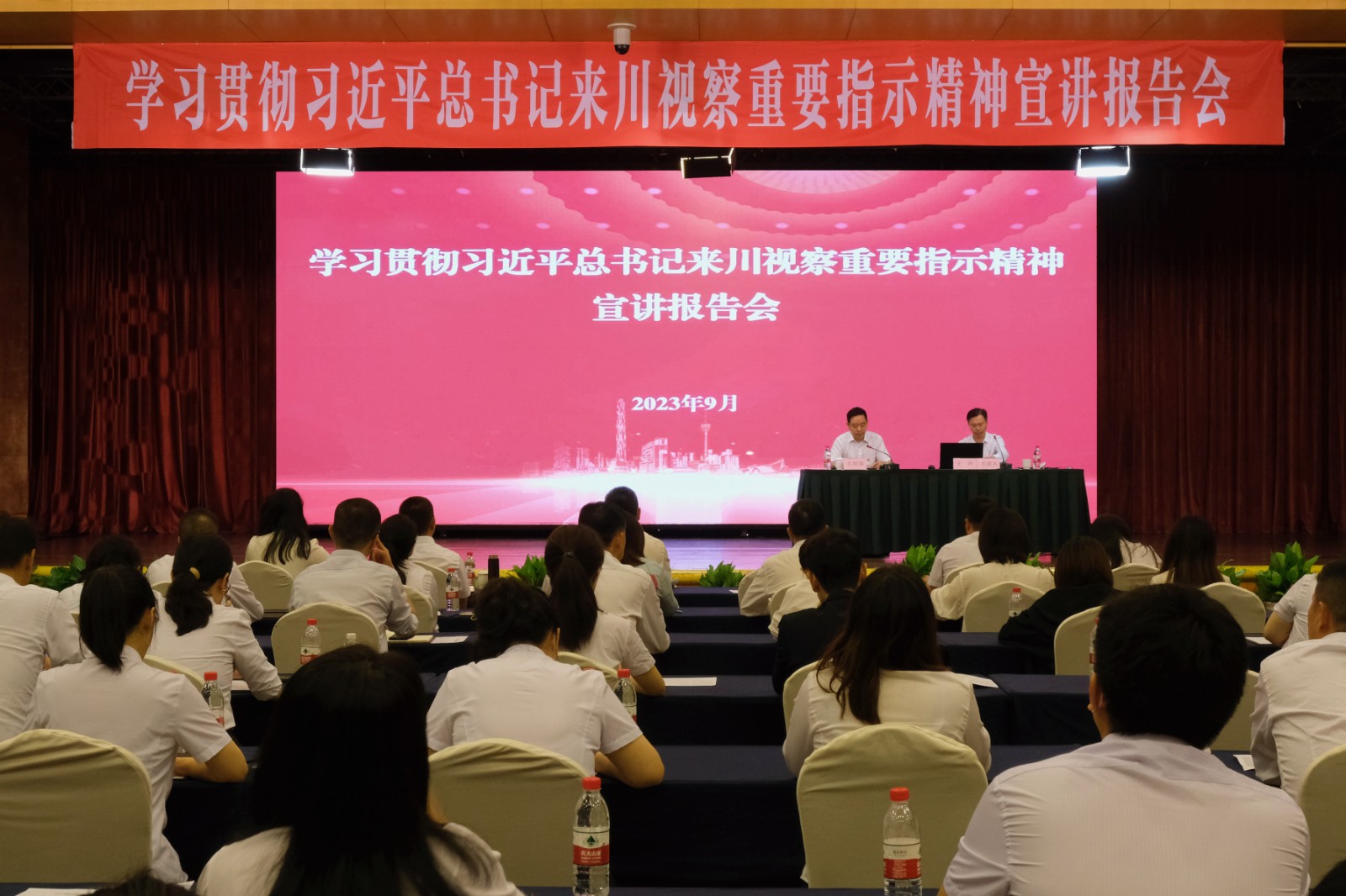 根据省委统一部署和省国资委党委的具体安排,9月18日,学习贯彻习近平总书记来川视察重要指示精神省委宣讲队企业分队走进川投集团,举办学习贯彻习近平总书记来川视察重要指示精神宣讲报告会。省委宣讲队企业分队成员、四川旅游学院副院长王冲作宣讲报告。川投集团党委副书记、董事邓凯主持宣讲报告会。川投集团、省能投集团、四川博览集团、国宝人寿和省紫坪铺公司110余名党员干部职工现场聆听宣讲。
